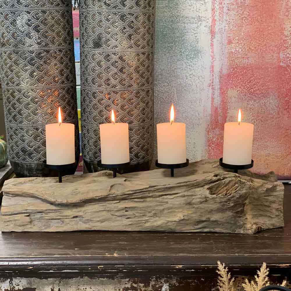Kerzenhalter Natur aus einem Stück Holz aus der Wurzel des Teakholzbaums mit 4 Kerzenhaltern. Der perfekte Kerzenhalter für die Advents- und Weihnachtszeit