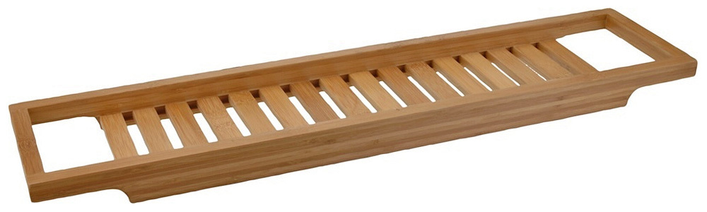 Die Badewannenablage ist aus dem nachwachsenden Rohstoff Bambus hergestellt. Mit der Breite von 64 cm passt die Ablage perfekt in die meisten Wannen.