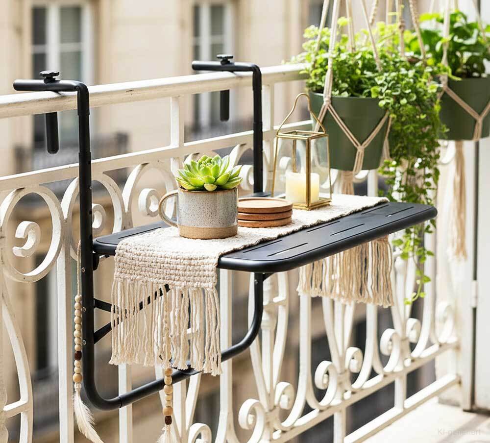 Gerade in Wohnungen mit begrenztem Außenbereich ist ein klappbarer Balkontisch die perfekte Lösung. Durch das clevere Einhängesystem wird kein zusätzlicher Stellplatz benötigt – der Tisch wird einfach ins Geländer eingehängt und sicher fixiert.