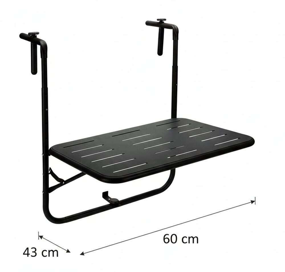 Klappbarer Balkontisch Schwarz – Platzsparender Hängetisch für dein Balkongeländer (43 x 60 cm)