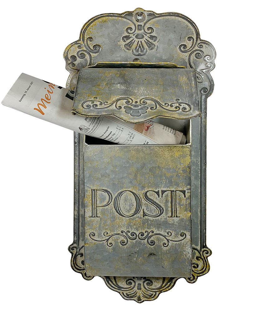 - Dieser originelle Briefkasten ist aus Metall gefertigt und im Shabby Stil verzinkt und rostig patiniert.