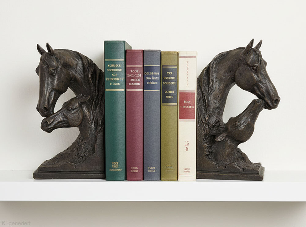 Diese edle Buchstütze in kunstvoller Pferde-Optik besteht aus 2 separaten Stützen und überzeugt durch ihr außergewöhnliches Design! Sie ist absolut originell und fällt garantiert auf - Der Hingucker in jedem Bücherregal!