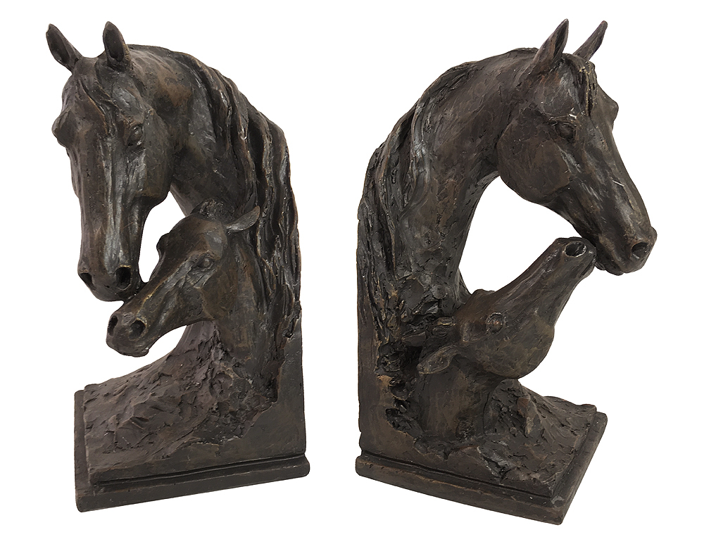 Buchstützen Pferd 2 Stück Buchständer Gusseisen Antik-Stil Paar Bronze-Optik