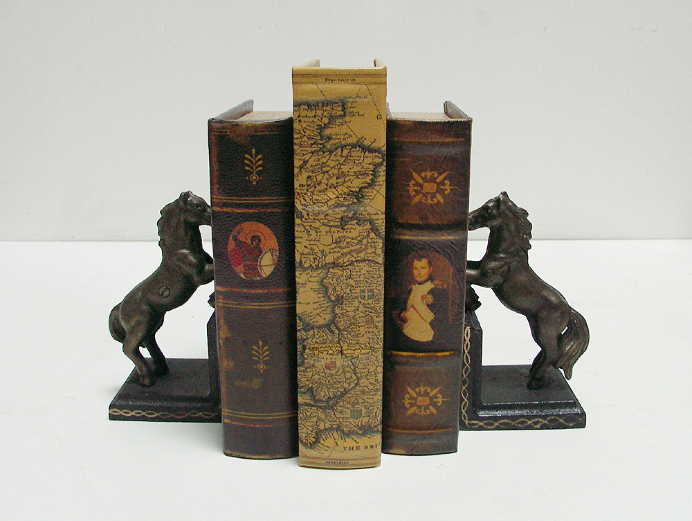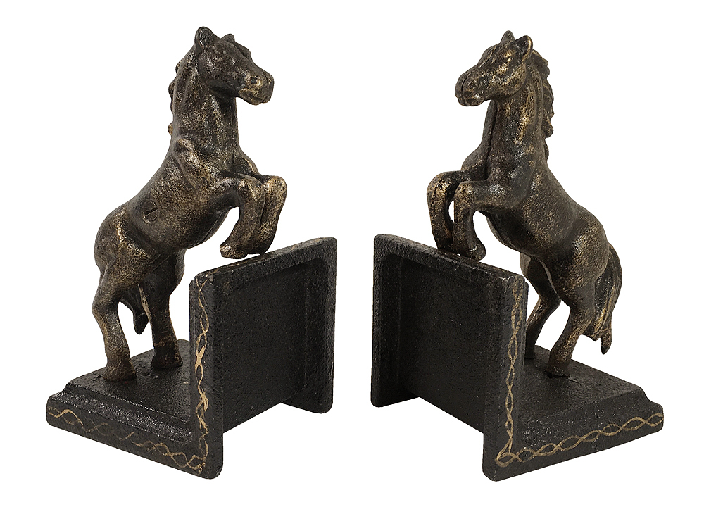 Die Buchhalter sind in traditioneller Machart aus schwerem Gusseisen gefertigt und bronzefarben patiniert. Die beiden Pferde-Figuren in springender Pose, sind mit viel Liebe zum Detail verarbeitet und verleihen diesem Set eine besonders elegante Note. Sie spielen dabei eine besonders tragende Rolle und sorgen eindrucksvoll dafür das die Bücher ihre Haltung bewahren und nicht umfallen! Dezente Unebenheiten und eine rustikale Patina machen jeden dieser tollen Stücke zu einem Unikat und unterstreichen den individuellen Charakter der Stützen. Diese Buchstütze ist absolut originell und fällt garantiert auf - Der Hingucker in jedem Bücherregal!