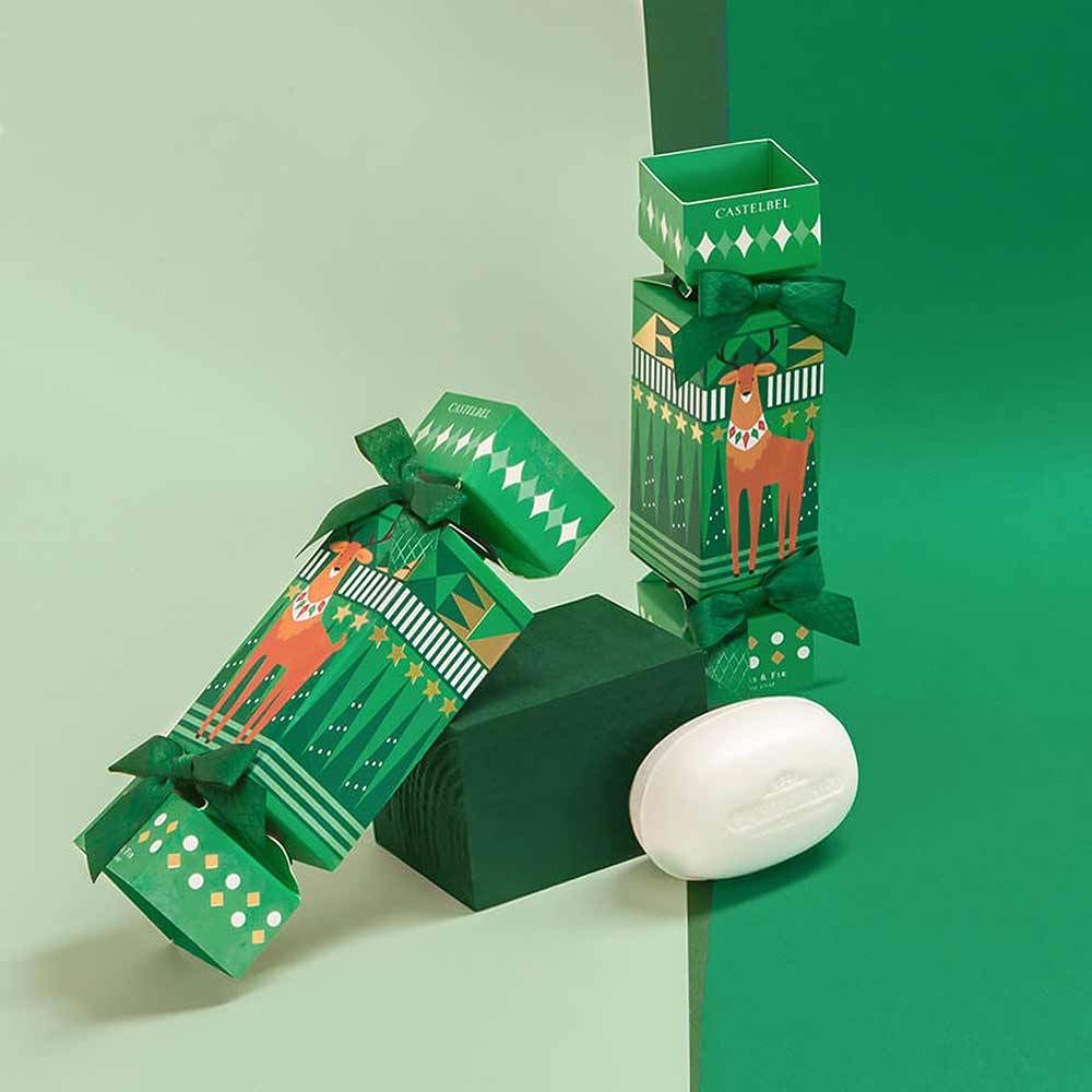 Die perfekte kleine Aufmerksamkeit zu Weihnachten! Die Xmas-Seifen sind mehr als nur Seifen - sie sind bezaubernde und duftende Geschenke, voller liebenswerter Details. Die Rentier Seife in dekorativer Geschenkverpackung duftet herrlich nach Wald - eine Mischung aus Zypresse und Tanne.
