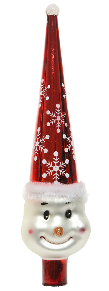 Christbaumspitze Schneemann Rot Weiß Echt Glas Weihnachtsbaumspitze 25cm