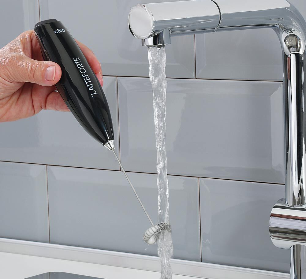 Cilio Milchaufschäumer LATTEFORTE - Volle Power für perfekten Genuss! Der Milchaufschäumer LATTEFORTE bringt mit beeindruckenden 16.000 Umdrehungen pro Minute ordentlich Schwung in die Küche. Warme oder kalte Milch verwandelt er im Handumdrehen in cremigen, stabilen Schaum – ideal für Cappuccino, Latte Macchiato, Eiskaffee oder Smoothies. Auch Kakao und Milchshakes sind im Nu zubereitet. Doch der LATTEFORTE kann noch mehr: Er hilft Ihnen beim Verquirlen von Eiern und Milch für ein luftiges Omelett und ist damit ein echter Allrounder. Wenn er gerade nicht im Einsatz ist, findet er sicheren Halt im stabilen Edelstahlständer. Funktional, leistungsstark und praktisch – der perfekte Helfer für Ihre Küche!