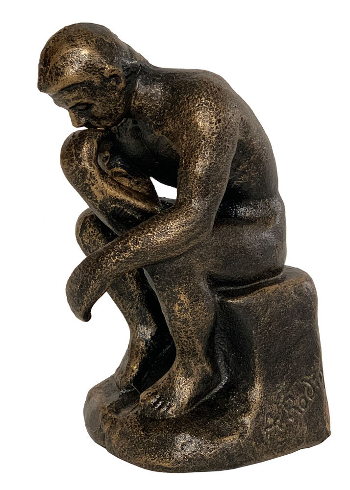 Diese schöne Figur aus Gusseisen ist eine Replik der berühmten Plastik „Der Denker“ von Auguste Rodin.