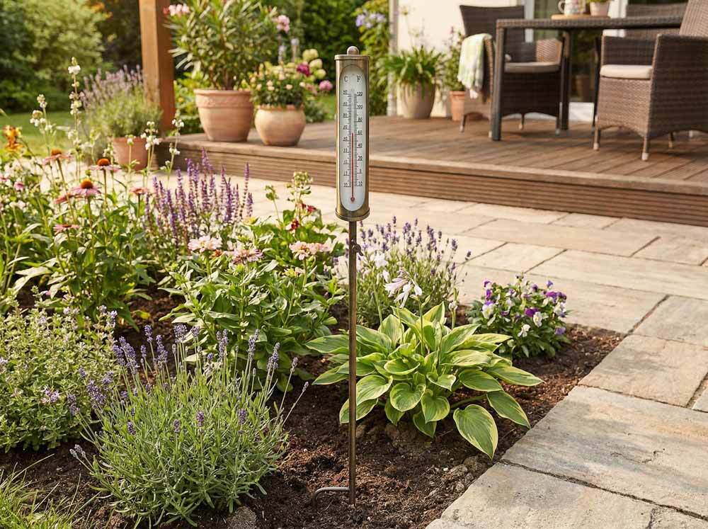 Mit diesem Gartenthermometer in verwittertem Vintage-Look lesen Sie ganz stilvoll im Garten die Temperatur ab!