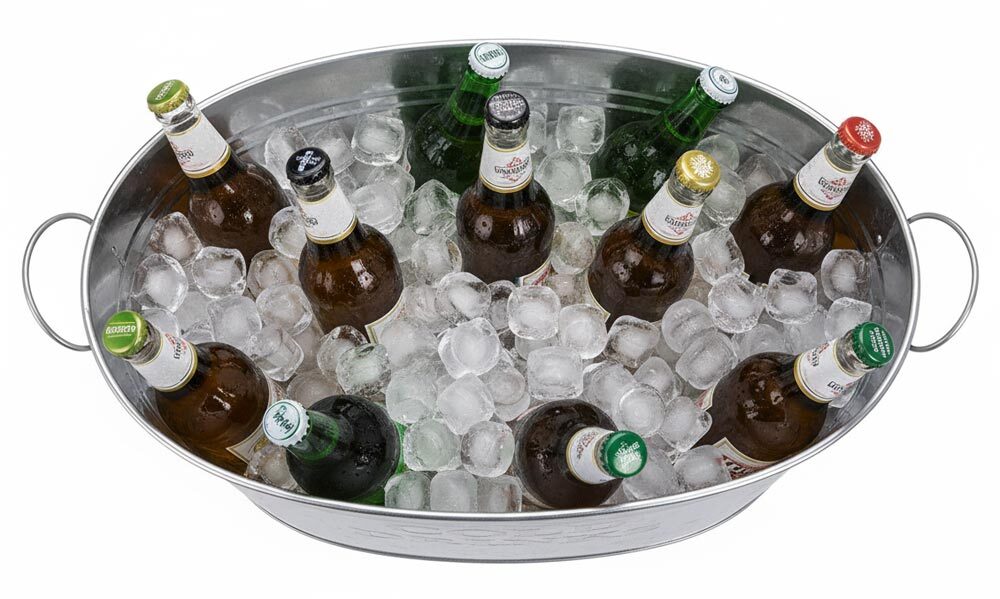 Packe einfach eine Ladung Eis in die Wanne und die Getränkeflaschen dazu, dann musst Du nicht für jede Flasche zum Kühlschrank laufen!