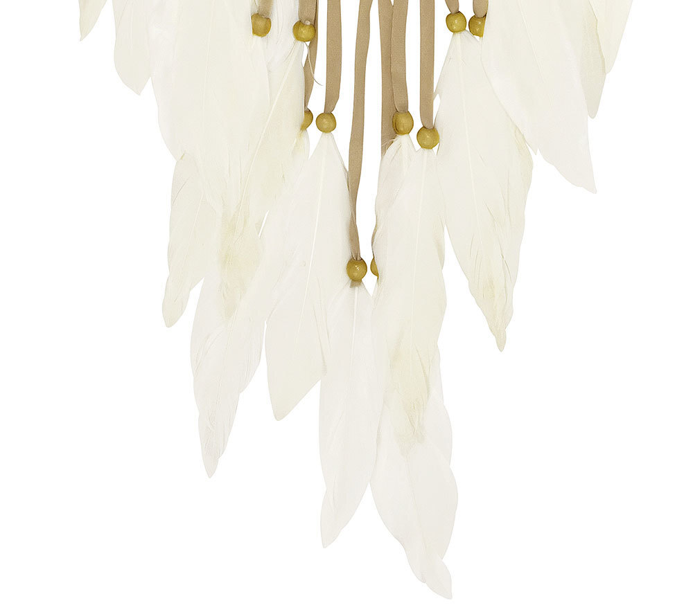 - Stoffbänder mit Holzperlen und weißen Federn runden die exotische Optik stilvoll ab.
