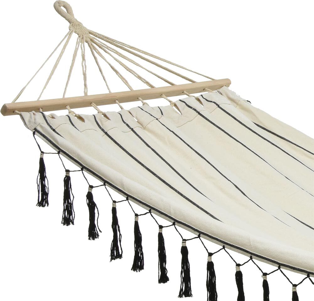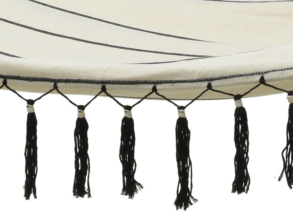 Hängematte Ibiza Fransen Stabhängematte Weiß-Schwarz Outdoor Camping 100x200cm