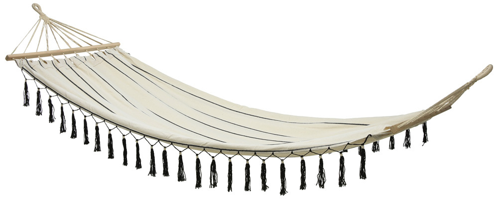 Lasse doch einfach mal die Seele baumeln...! Mit dieser tollen Hängematte mit den stylischen Fransen kannst Du entspannt Deinen Gedanken nachhängen und kommst ganz beschwingt durch den Sommer!