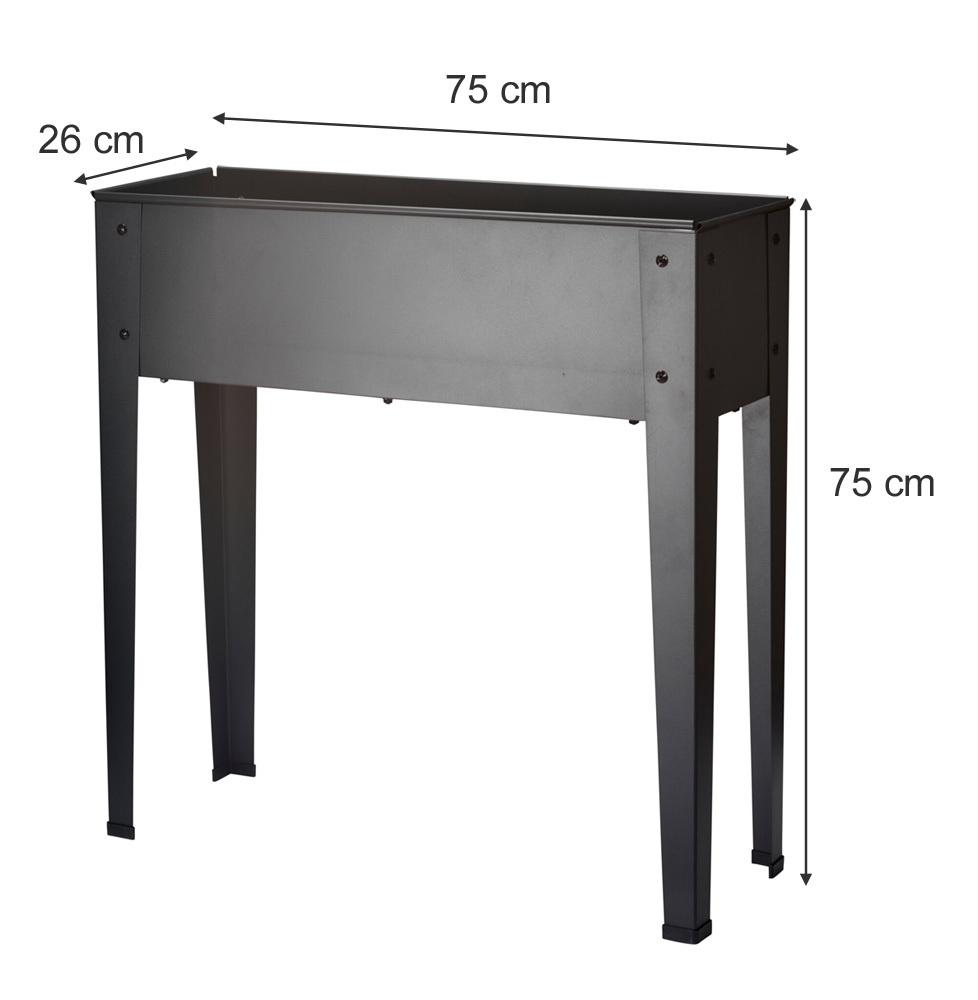 Verschönere Sie Deinen Balkon, Terrasse oder den Garten mit diesem eleganten Hochbeet. Gefertigt aus hochwertigem, pulverbeschichtetem Metall, vereint es zeitloses Design in Anthrazit mit maximaler Funktionalität. Mit seiner Größe von 75 x 26,5 x 75 cm ist es die ideale Lösung für Urban Gardening, Kräuterkulturen oder blühende Blumenarrangements - selbst dort, wo Platz Mangelware ist.
