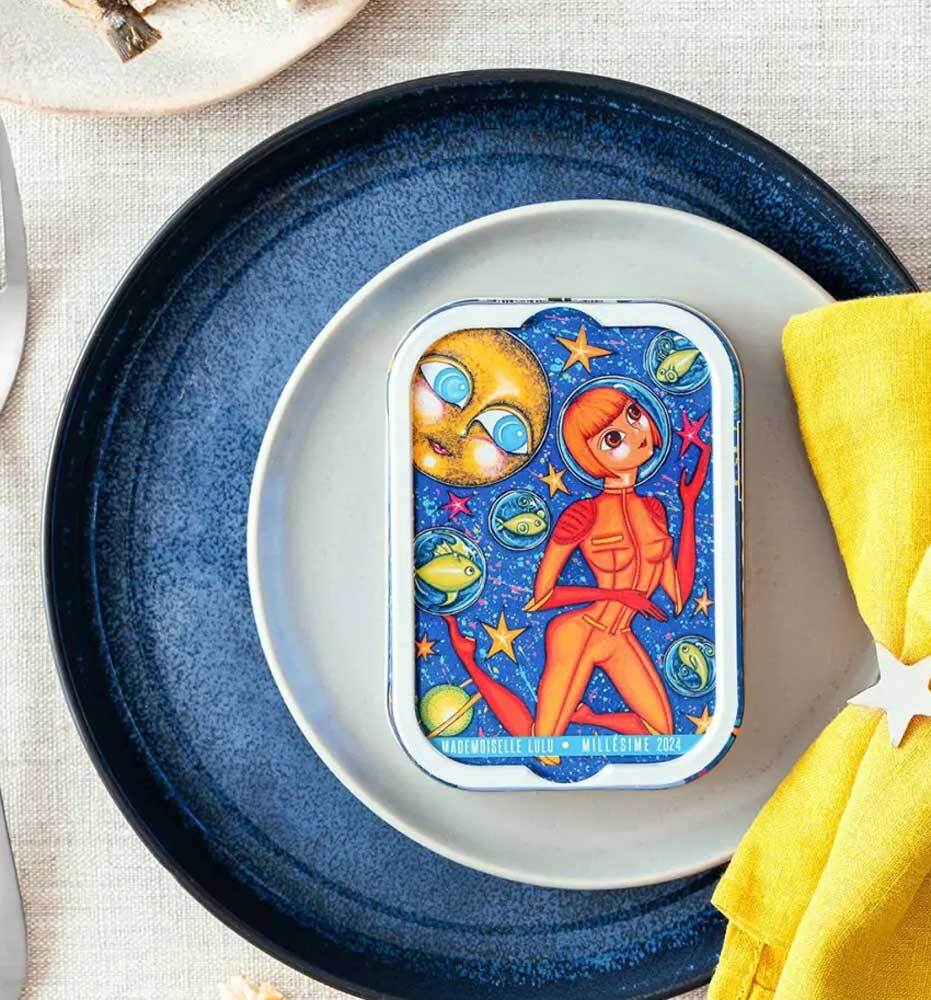 Die limitierte Auflage der La Perle des Dieux Jahrgangssardinen Lulu aus dem Jahr 2024 wurde von der Malerin Coralie Joulin liebevoll gestaltet und erfreut den Gaumen mit einer feinen und aromatischen Geschmacksnote.