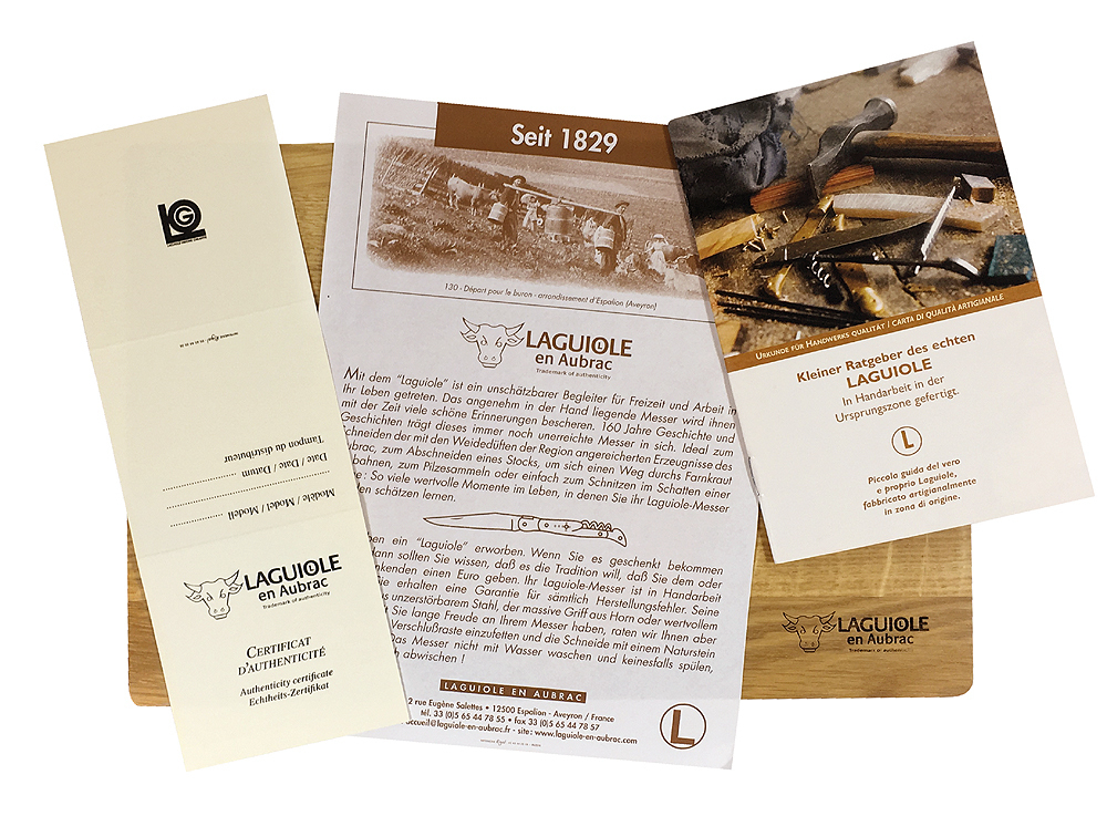 Der Traditionshersteller Laguiole en Aubrac stammt aus der Ursprungsregion in Frankreich. Alle Messer werden in liebevoller Handarbeit gefertigt, wobei alle Arbeitsschritte von ein- und derselben Person ausgeführt werden. Durch die kunstvolle Fertigung ist kein Messer wie das andere, jedes Einzelne ist ein Unikat, daß die Handschrift und die Signatur des Schmiedemeisters trägt.