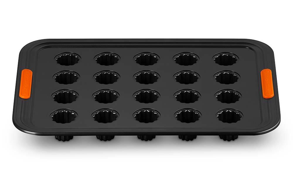 Die 20er Mini Canneleform sorgt für das authentisch französische Backerlebnis zu Hause. Die antihaftbeschichtete Form wurde speziell dafür entwickelt, die Spezialität aus der Region rund um Bordeaux zu backen. Mit ihr gelingen Canneles, die innen herrlich luftig und außen perfekt karamellisiert sind. Verwenden Sie diese Form, um nach dem traditionellen Rezept süße Canneles zu backen, oder probieren Sie eine herzhafte Variante aus, die Sie als Amuse-Bouche reichen können. Das Backblech ist für Temperaturen bis 240 °C geeignet. Es ist außerdem mit der robusten Antihaftbeschichtung von Le Creuset versehen, die dafür sorgt, dass sich Gebäck leicht aus der Form lösen lässt.