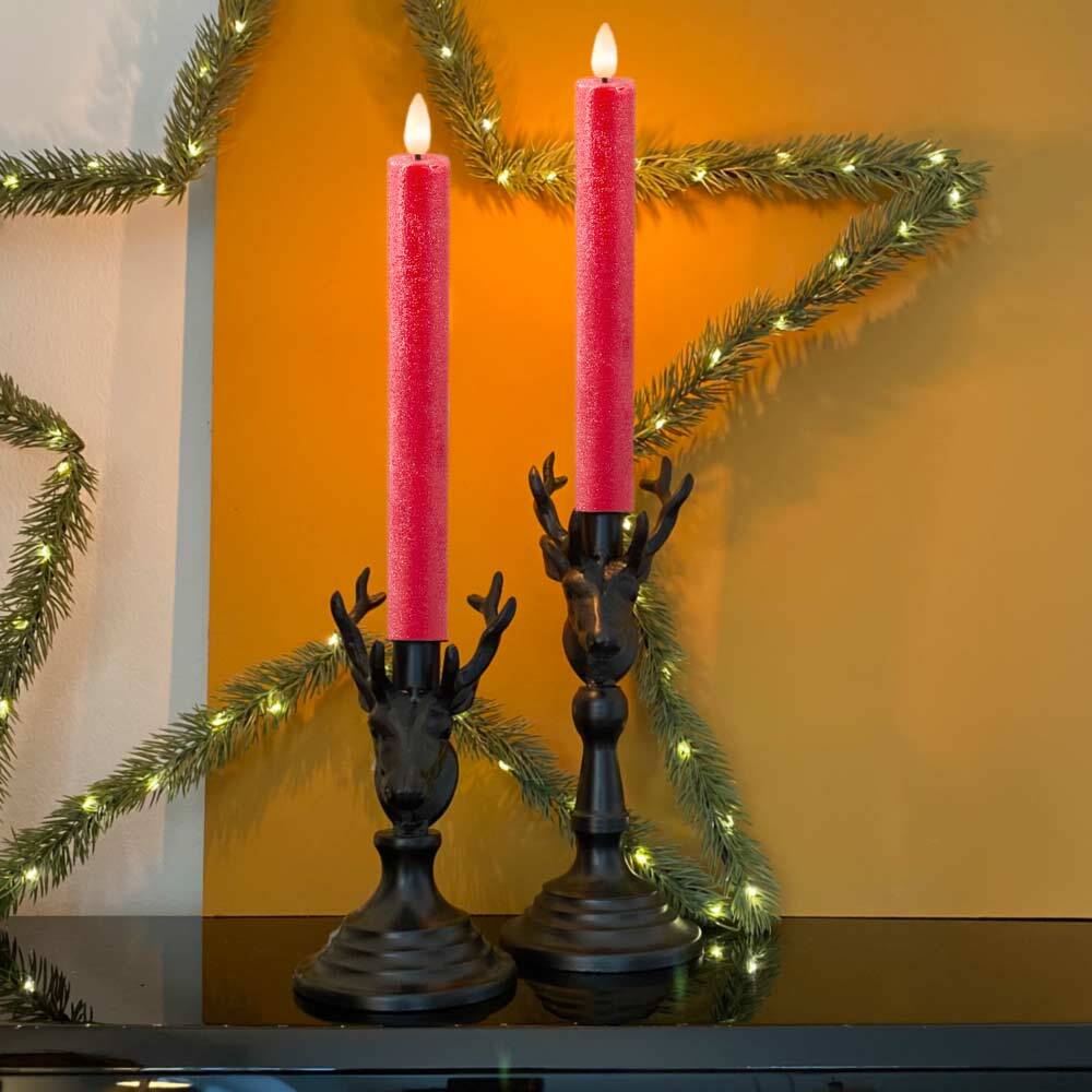 - Dieses Set besteht aus 2 LED-Stabkerzen und funktioniert batteriebetrieben.