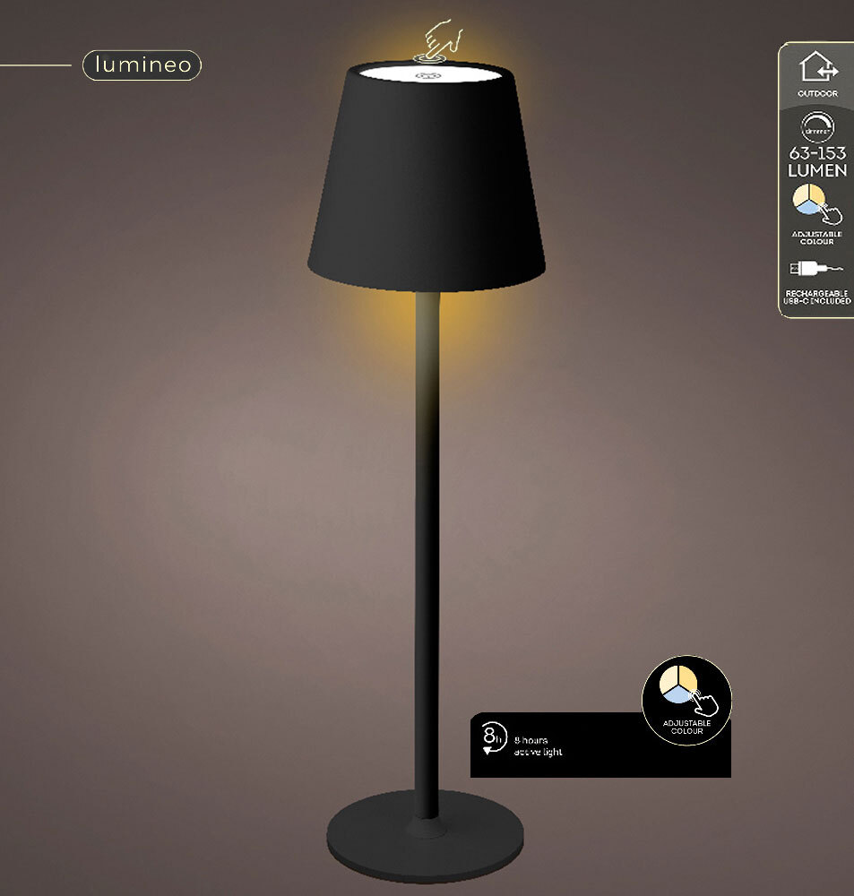 Die formschöne und wiederaufladbare Tischlampe in zeitlosem Design bringt Licht ins Dunkel und ist ein stimmungsvolles Accessoire für den Innen- & Außenbereich!