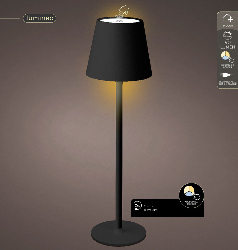 Die formschöne und wiederaufladbare Tischlampe in zeitlosem Design bringt Licht ins Dunkel und ist ein stimmungsvolles Accessoire für den Innenbereich!