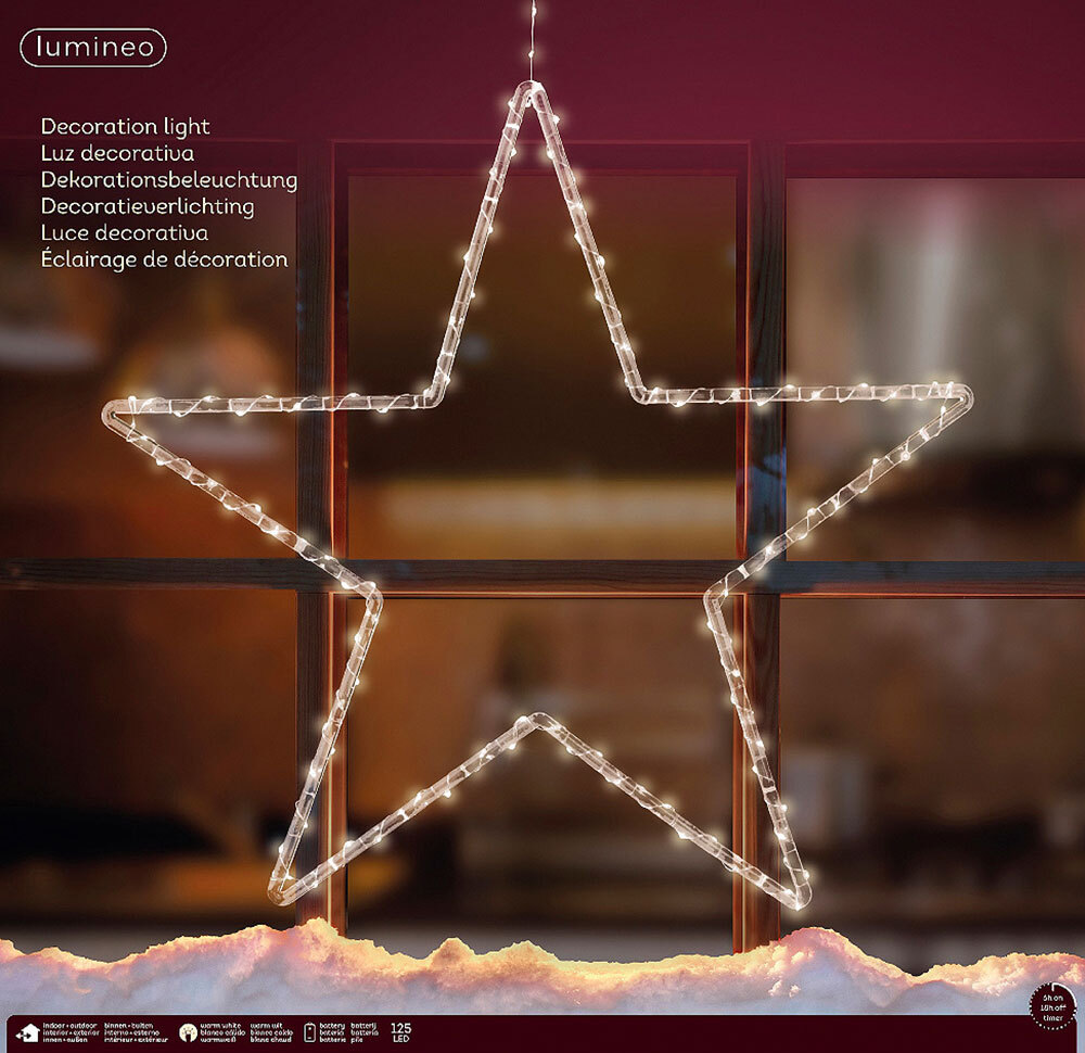 - Der Stern ist aus transparentem Acryl gefertigt und mit einer Micro-LED Lichterkette umwickelt.