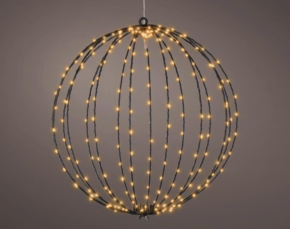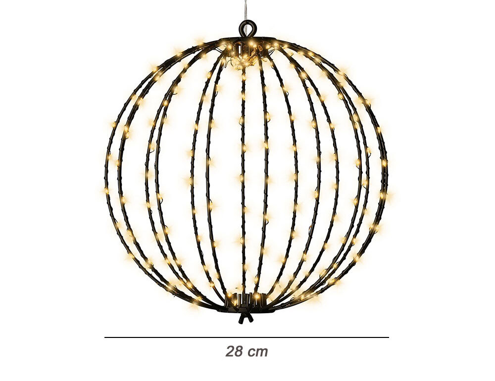 - Die Kugel ist aus schwarzem Metall gefertigt, zusammenfaltbar und mit einer Micro-LED Lichterkette umwickelt.