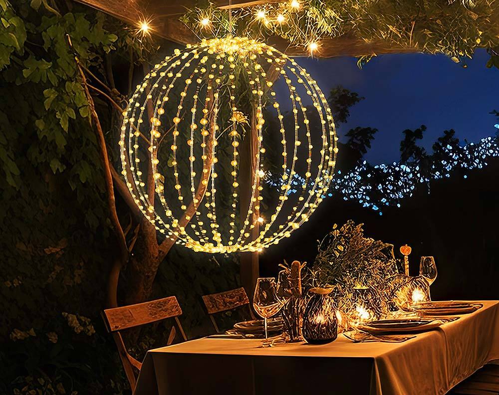 Magische Weihnachtsstimmung für Ihr Zuhause! Die hängende LED Leuchtkugel in Drahtoptik ist für den Innen- & Außenbereich geeignet und zaubert mit warmweißem Licht eine stimmungsvolle Atmosphäre. Ausgestattet mit 8-Stunden-Timer-Funktion und Stecker mit 5 Metern Zuleitung, bietet sie genug Komfort und Spielraum um Balkon, Garten und Terrasse stilvoll zu gestalten. Einfach aufhängen, anschließen und den Zauber der Weihnachtszeit genießen! In 3 Größen erhältlich.