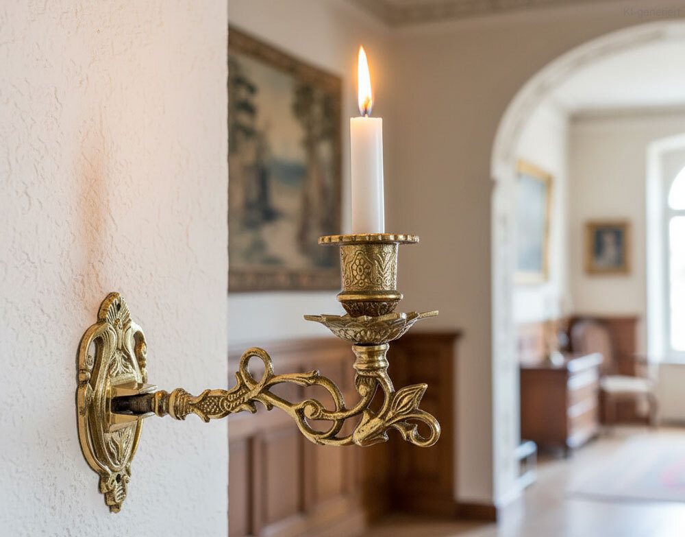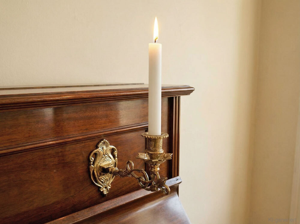Lassen Sie sich vom warmen Kerzenschein in eine andere Zeit versetzen. Piano-Wandkerzenhalter in antiker Optik.