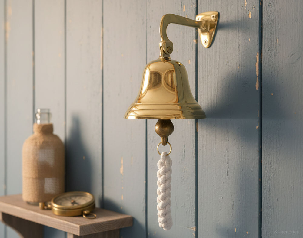 Diese Messing-Glocke sieht aus, als würde sie direkt von einem alten Schiff stammen! Sie hat einen schönen Klang und gibt jedem Raum eine indivduelle Ausstrahlung.