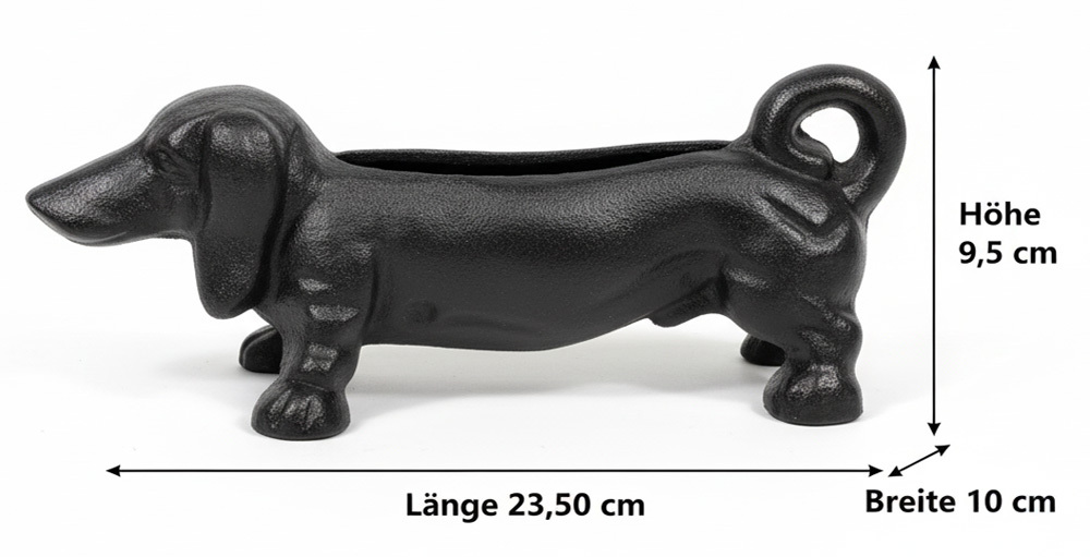 Im nostalgischen Stil gefertigt, ist der Dackel ein außergewöhnlicher Blickfang auf Terrasse, Veranda und vor der Tür.