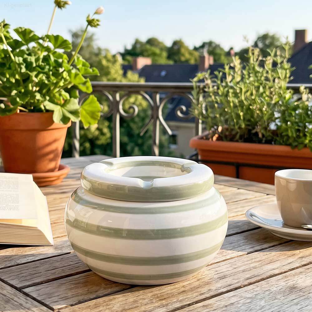 Dieser hochwertige Sturmaschenbecher aus Keramik ist die perfekte Lösung für alle, die auch im Außenbereich nicht auf Sauberkeit und Stil verzichten möchten. Mit einem großzügigen Durchmesser von 14 cm und einer Höhe von 9 cm bietet er viel Platz für Asche und Zigarettenreste – ideal für Balkon, Terrasse, Garten oder Gastronomie.