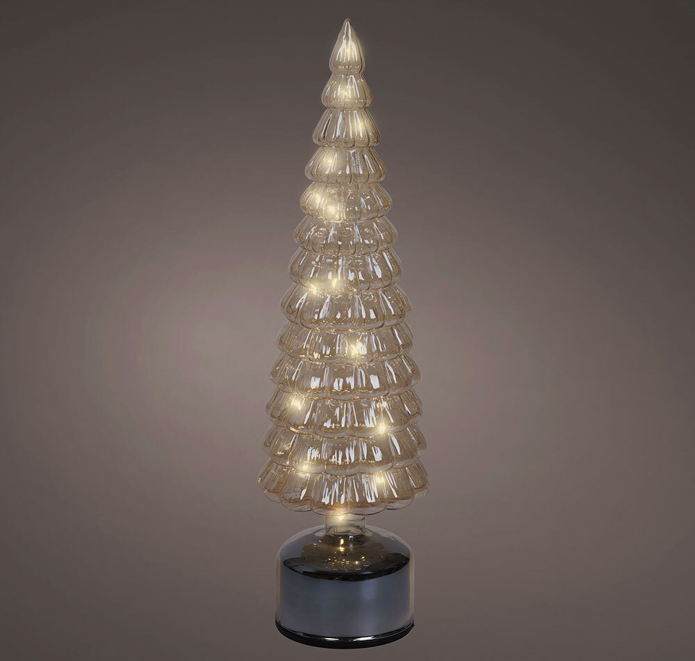 Weihnachtsbaum Glas Grau LED Bewegung Dekoleuchte Timer Tischleuchte Weihnachten 38cm
