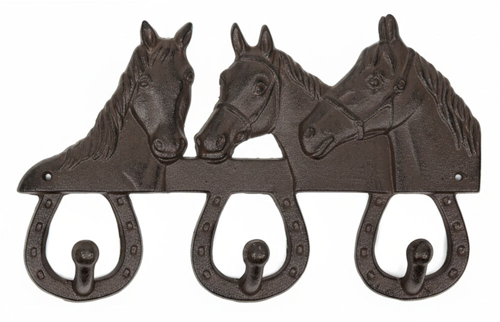 Wandgarderobe Pferde Gusseisen Antik Braun – 3 Haken im rustikalen Landhausstil