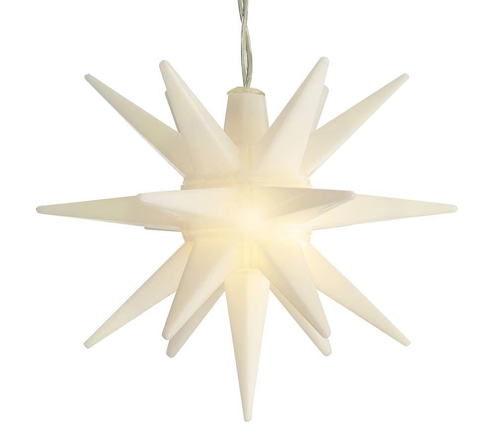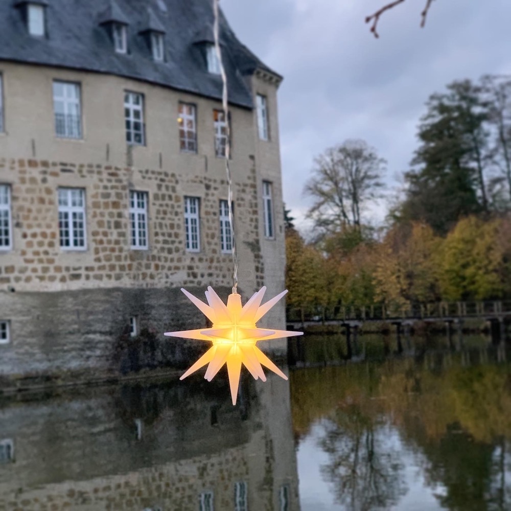 Der kleine 3D Leuchtstern in klassischem Weiß setzt leuchtende Akzente im Innen- & Außenbereich und schafft eine besonders stimmungsvolle Atmosphäre an den Weihnachtstagen.
