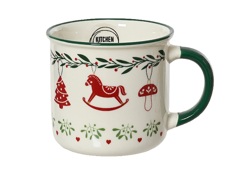 Das Auge trinkt mit! Aus diesem tollen Porzellan-Becher mit Schaukelpferd - und Weihnachtsmotiven schmecken Glühwein, Kakao und Punsch besonders gut!