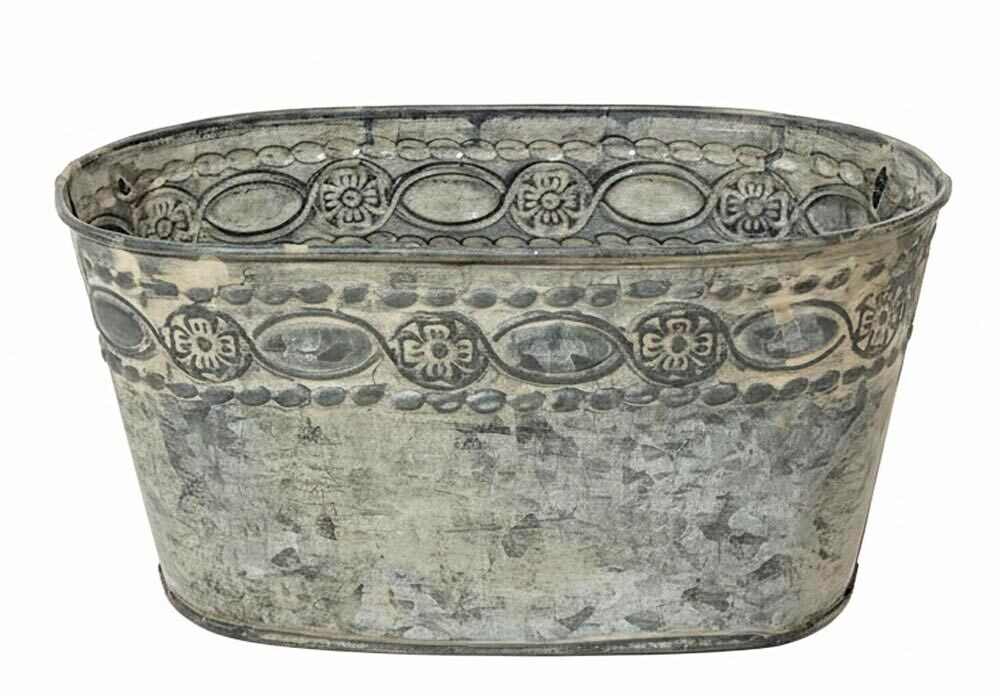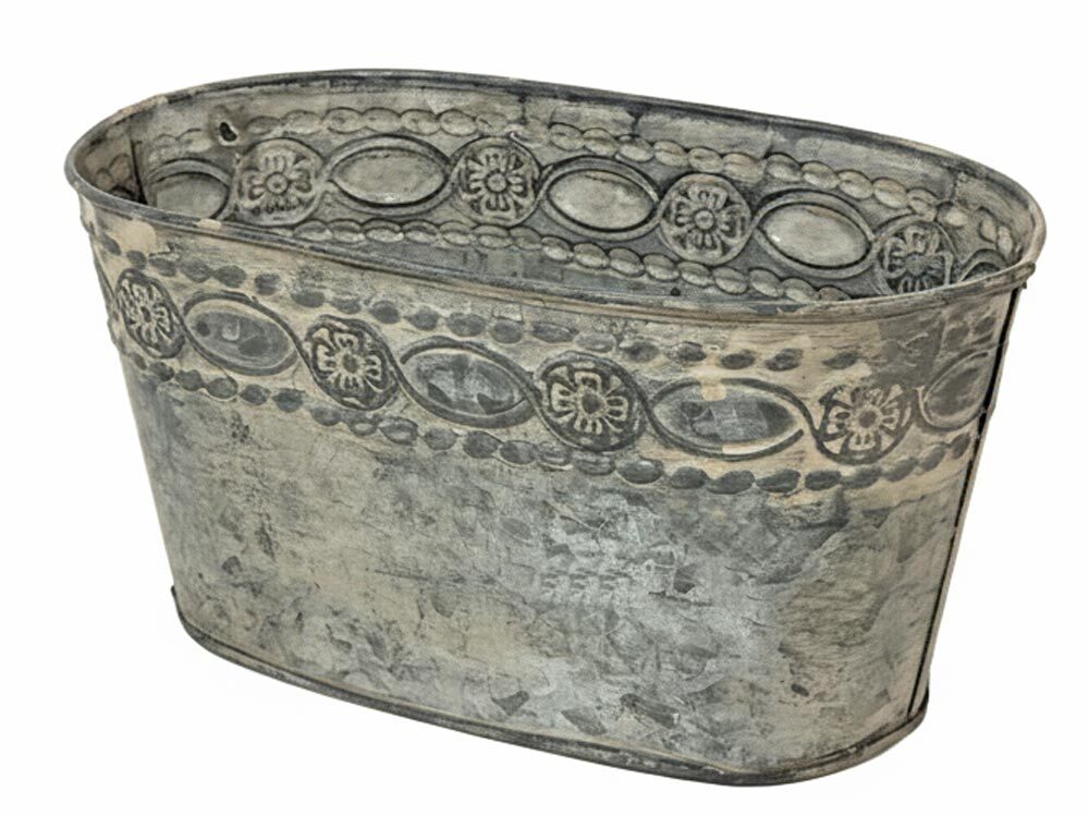 Im schön verzierten Zinktopf kommen Kräuter, Blumen und Pflanzen besonders schön zur Geltung. Natürlich eignet sich die Pflanzschale auch einfach als schöne Dekoration im Landhausstil.
